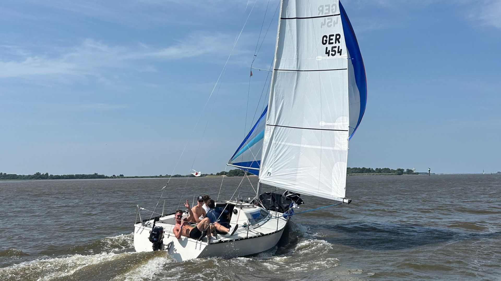 Nach wie vor verfügt der ASC nicht über einen Festausschuss - was seine Mitglieder aber nicht davon abhält, dennoch gelungene Feste zu feiern! Denn ein solches war das Absegeln 2025. Gestartet wurde am Freitagabend auf der Groden. Der Autor kann, auf Grund eigener Abwesenheit, leider nur Vermutungen darüber anstellen, wie gelungen dieser Abend war. Aber angesichts der Tatsache, dass sich das Gros der Mitglieder am nächsten Morgen erst nach dem Ausschlafen und lieber gegen die Tide nach Stade quälte, lässt darauf schließen, dass es ein langer und feuchtfröhlicher Abend war. So kam der ASC gewissermaßen in zwei Rudeln in Stade an. Ein paar Schiffe sind nämlich gegen 0800 in Finkenwerder gestartet, um pünktlich zu Niedrigwasser in Stadersand anzukommen. Das Frühstück vor Ort wurde dann unerwartet etwas nach hinten verschoben, weil tatsächlich die Brücke vor(!) Stadersand geschlossen war. Das ist derart ungewöhnlich, dass ein Skipper (bleibt anonym, blaues Waarschip in Bestzustand) diesen Umstand fast übersehen hätte. Zum Glück verfügt sein Boot auch im Rückwärtsgang über genug Power zum raschen Aufstoppen. Dann standen wir also vor dieser Brücke wie der sprichwörtliche Ochs vorm Berg und wussten alle erstmal nicht weiter. Die Seekarte kannte weder eine Funkfrequenz, noch eine Telefonnummer. Und Tröten brachte auch keinen Erfolg. Irgendwann kam dann jemand auf die Idee, einfach mal die Klappbrücke anzurufen - vielleicht könne die ja helfen. Bis heute weiß man nicht, ob der Brückenwärter von selbst aus seinem Vormittagsschläfchen erwacht ist, oder ob der Wärter der nächsten Brücke ihn nach dem Anruf geweckt hat. Jedenfalls durften wir irgendwann passieren und denn endlich in Stadersand frühstücken. Was für ein Abenteuer! Ungefähr 90 Minuten nach Niedrigwasser ging es dann weiter von Stadersand in Richtung Stadthafen. Das Passieren der nächsten Brücke war dann gewohnt unspektakulär, und so kamen die ersten Schiffe gegen Mittag im Stadthafen von Stade an. Im Laufe des frühen Nachmittags enwickelten sich dann drei ansehnliche ASC-Päckchen (ein paar Freunde des ASC inbegriffen). Was sich auch entwickelte, war ein wunderbarer Spätsommertag mit bis zu 25° - das hat die Reiseleitung sehr gut gebucht! Diese Temperaturen führten zu frühzeitigen Drinks. Es wurde Gin-Tonic auf Eis gereicht. Cocktail des Tages war Bier. Und so wurde es Abend, die Gläser (und Dosen) an Bord wurden geleert, und der ASC verholte sich in den Ratskeller. Das war nicht unbedingt etwas für Gourmets, und auch über das Bier gab es geteilte Meinungen (von sehr gut bis sehr schlecht), aber Mann und Frau wurden satt. Einigkeit schien darüber zu herrschen, dass Athmosphäre und Stimmung sehr gut waren. Es wurde geschnackt, zusammen gelacht, wilde Geschichten wurden erzählt. Sehr gelungen! Anschließend gingen einige Crews noch auf einen (oder zwei, vielleicht mehr) Absacker in die Stader Altstadt, während andere sich auf den Schiffen versammelten, um dort noch einen Schlummertrunk zu nehmen. Am Sonntag konnte man zum Glück ausschafen! Was den Autor angeht, so war das dringend notwendig. Im Laufe des Vormittags wurden die Menschen auf den Schiffen langsam lebendig. Es wurde zu Kenntniss genommen, dass es windig war. Glücklicherweise aus der richtigen Richtung. Über Funk wurde Windstärke 7 in Brunsbüttel gemeldet. Das ist schon ordentlich. In Stade hat man davon erstmal noch nicht viel gemerkt. Entsprechend zivilisiert lösten sich dann die Päckchen auf, und die 18 Schiffe fuhren im Gänsemarsch die Schwinge herunter. Auf der Elbe angekommen, bekam man eine Idee von der Windstärke. Dort entpuppten sich dann drei Ambitions-Kategorien: Die Faulen fuhren ganz locker mit gesetztem Vorsegel Nachhause. Dann gab es die Ambitionierten, die das Groß (mit und ohne Reff) gesetzt haben. Und die Waghalsigen, die mit Groß und Vorsegel losgebrettert sind. Der Autor verzichtet darauf, sich selbst zu kategorisieren. Aber er konnte das Geschehen gut beobachten, weil er mit seinem kleinen Boot (wie immer) hinterher gefahren ist. Großer Dank gebührt allen Mitgliedern, die diese tolle Veranstaltung initiiert und organisiert haben. Es ist eine Wohltat zu sehen, dass es auch ohne feste Zuständigkeiten ein Vereinsleben gibt. Und dass die Initiative von verschiedenen Menschen kommt. Wir hatten ein großartiges Ansegeln, eine wunderbare Jubiläumsregatta und nun dieses schöne Absegeln, das sich reger Beteiligung erfreut hat. Auf den ASC ein dreifaches Hipp-Hipp-Hurra, Hipp-Hipp-Hurra, Hipp-Hipp-Hurra!